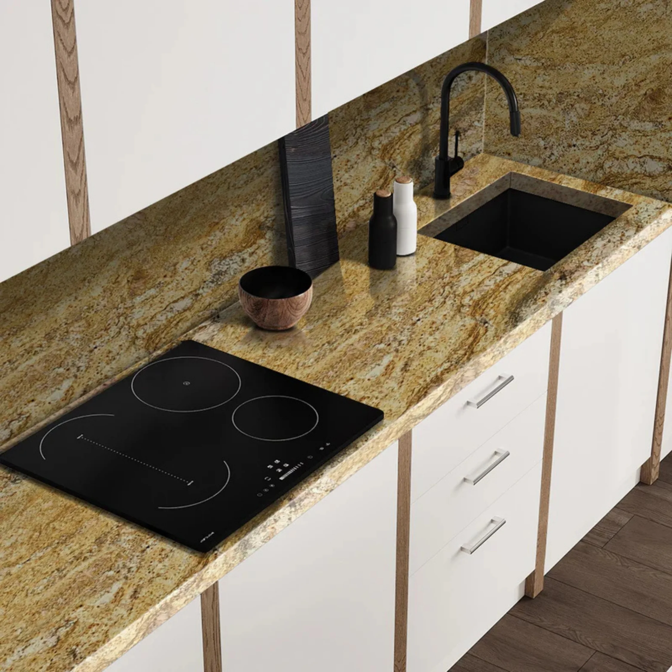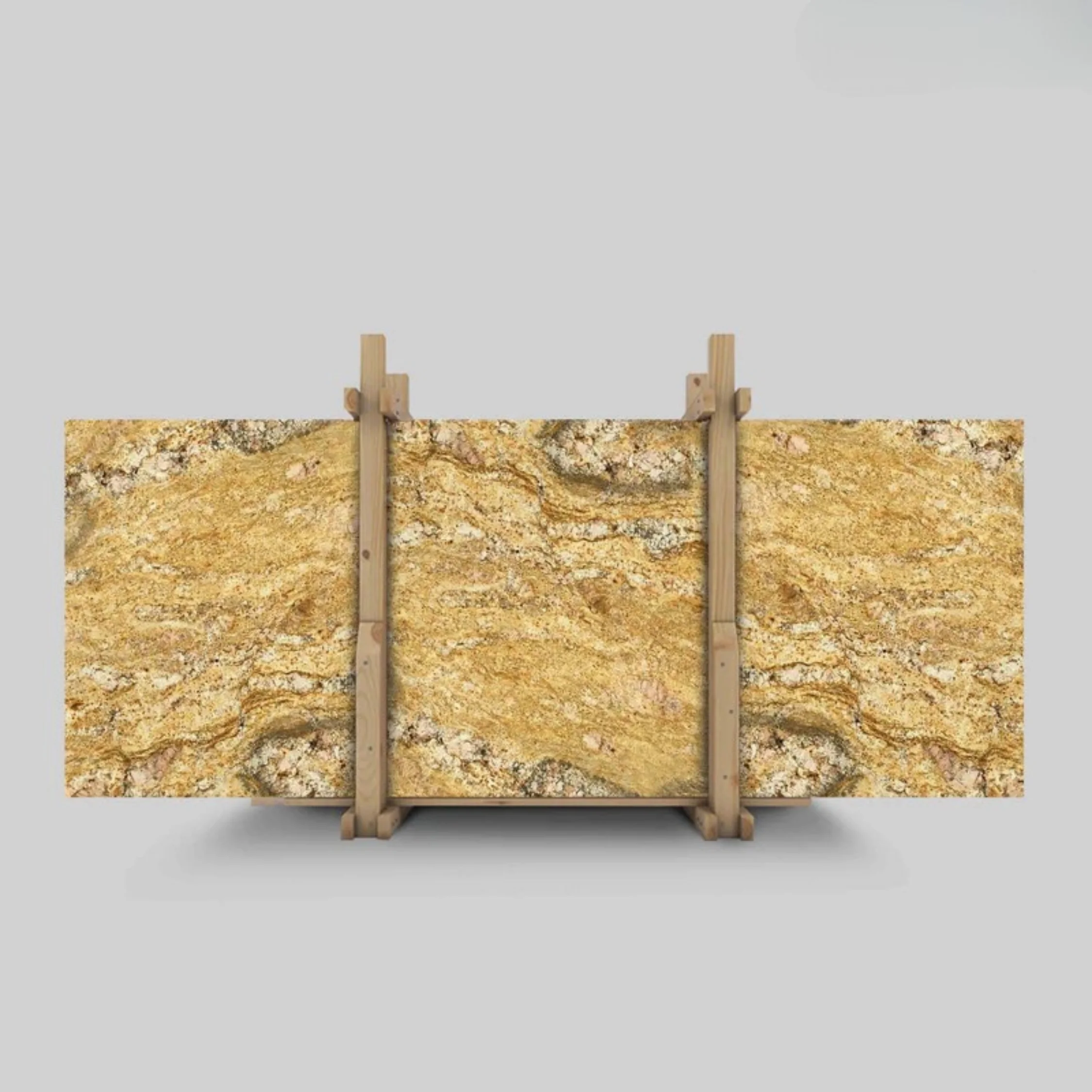 Imperial Gold Granite is a stunning natural stone known for its luxurious appearance and exceptional durability. Originating from India, this granite is characterized by its warm golden tones that blend with hues of beige, cream, and brown, creating a rich and vibrant palette. The stone often features subtle flecks of black, gray, and gold, which add texture and depth to its surface. The result is a striking visual appeal, making it a popular choice for high-end residential and commercial applications. The natural beauty of Imperial Gold Granite is complemented by its strength and resilience. It is highly resistant to scratches, heat, and stains, ensuring that it maintains its stunning appearance even in high-traffic areas. These qualities make it an ideal material for kitchen countertops, bathroom vanities, and flooring. Its durability also makes it a great option for both interior and exterior applications, including wall cladding, building facades, and garden features. The stone's versatility allows it to enhance a variety of design styles, from traditional to contemporary, making it a sought-after material for many design projects. One of the notable features of Imperial Gold Granite is its ability to complement a wide range of color schemes. The warm, golden tones work well with both light and dark materials, providing flexibility in design. It pairs beautifully with wood accents, darker stones, or metallic finishes, creating a balanced and elegant aesthetic. The granite's polished surface enhances its natural luster, but it can also be found in honed or leathered finishes, providing options for different textures and looks.