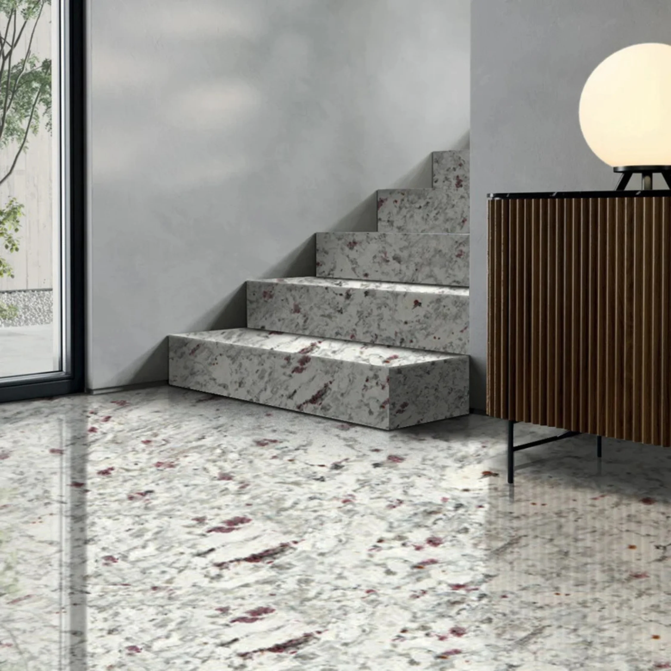 Moon White Granite is a sophisticated and elegant natural stone that is highly regarded for its subtle beauty and versatile applications. Quarried in India, this granite features a soft white to light gray background, with gentle veins and specks of light beige, brown, and sometimes black, creating a harmonious and understated appearance. The fine, delicate patterns within the stone resemble a moonlit landscape, which gives it its name and adds a sense of tranquility and refinement to any space. The polished finish of Moon White Granite enhances its natural colors, giving the stone a smooth, reflective surface that brightens up interiors. Its light, neutral tones make it ideal for creating a clean, open atmosphere, and it works well in both contemporary and traditional settings. The granite's subtle veining adds texture and depth, making it a visually appealing choice for a variety of design styles. It can be used to complement or contrast with bolder design elements, offering flexibility in interior design.Durable and strong, Moon White Granite is resistant to heat, scratches, and stains, which makes it a practical option for high-use areas like kitchen countertops, bathroom vanities, and flooring. Its resilience ensures it maintains its beauty and functionality over time, even in spaces that experience frequent foot traffic or exposure to heavy use. In addition to interior surfaces, Moon White Granite is also commonly used in exterior applications, such as building facades, garden features, and outdoor countertops, thanks to its ability to withstand the elements.