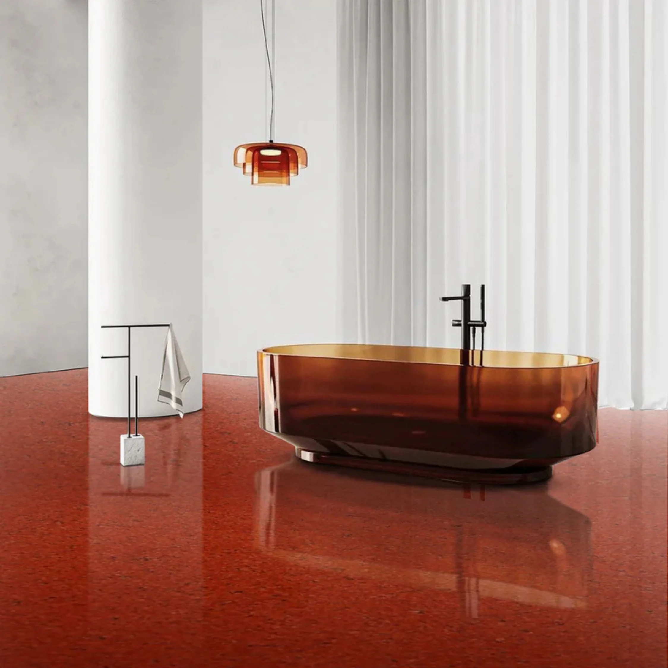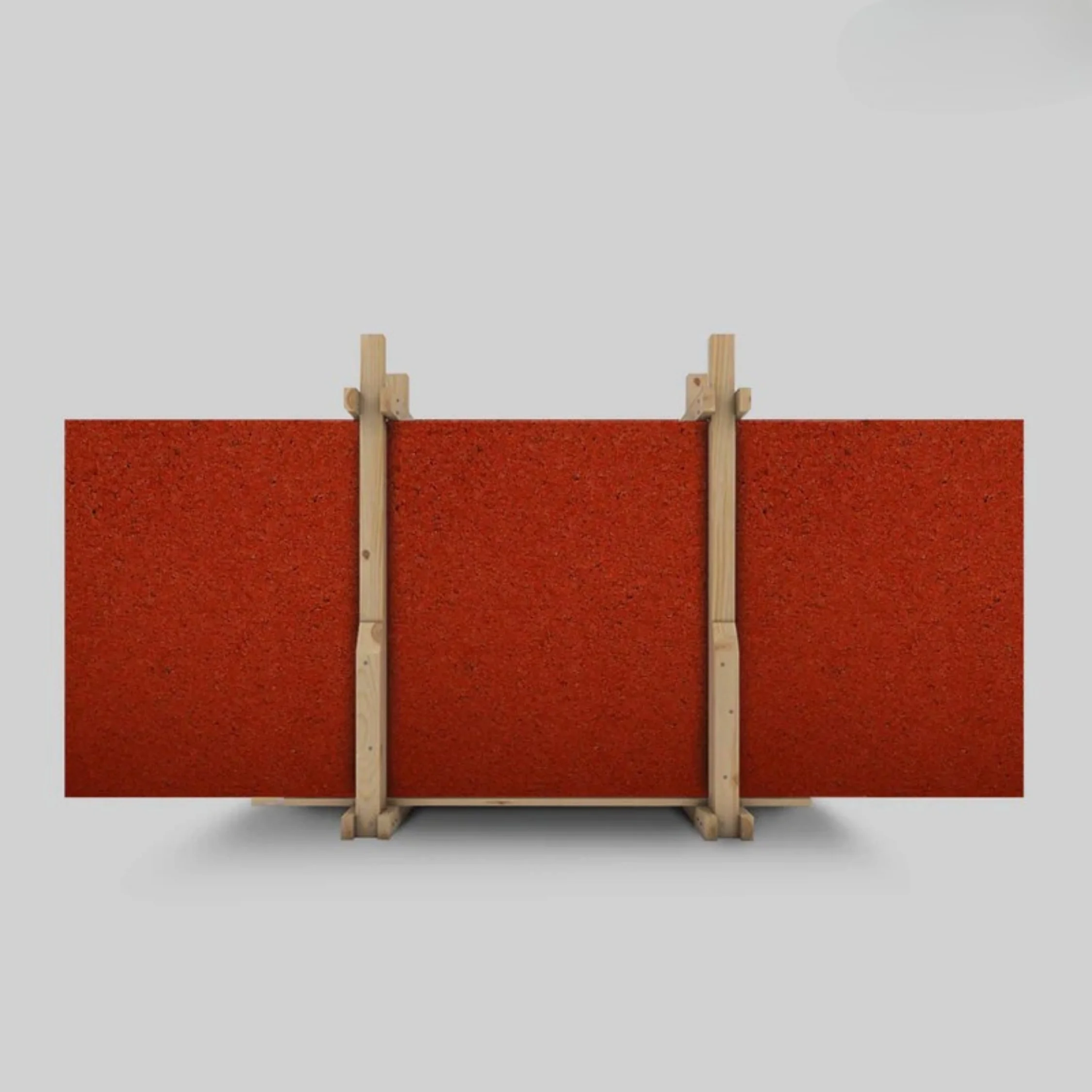 Panna Red Granite is a captivating natural stone known for its rich red hues and intricate patterns, making it a popular choice in both residential and commercial applications. Sourced from India, this granite features a blend of deep red tones interspersed with darker veins of black, brown, and gray, giving it a dynamic, textured appearance. The stone's vibrant colors and bold veining create a striking, sophisticated aesthetic, perfect for adding warmth and elegance to any design. Durable and resistant to scratches, heat, and stains, Panna Red Granite is an ideal material for high-traffic areas. It is often used for kitchen and bathroom countertops, where its strength and visual appeal make it both functional and stylish. In addition to countertops, this granite is widely used for flooring, wall cladding, and exterior applications like facades and patios, offering versatility in various settings. Its polished finish enhances the depth of its colors, though it is also available in honed or leathered finishes for a more matte appearance. Panna Red Granite's bold, rich color palette allows it to complement a variety of design styles, from traditional to contemporary. It pairs beautifully with both light and dark materials, making it a versatile choice for various interior themes.