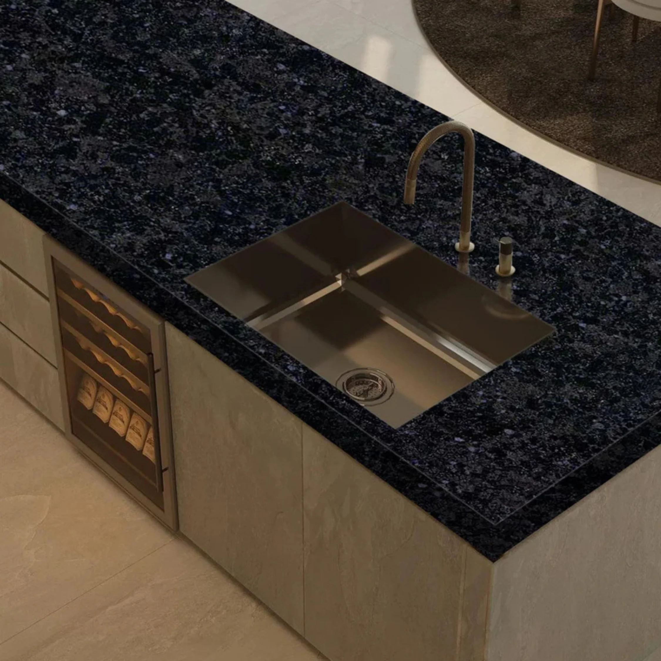 Rajasthan Black Granite is a highly esteemed natural stone, widely appreciated for its striking black color and fine texture. Quarried from the Rajasthan region of India, this granite is known for its deep, uniform black background, often accompanied by subtle specks or veins in shades of gray and white. These variations in the stone's appearance give it a refined, sophisticated look that appeals to a wide range of design preferences. Rajasthan Black Granite's sleek, polished finish adds to its elegant charm, making it an ideal choice for creating luxurious, high-end surfaces. The granite is highly durable and resilient, making it well-suited for both residential and commercial applications. Its resistance to heat, scratches, and stains ensures that it remains functional and beautiful even in high-traffic areas. Rajasthan Black Granite is commonly used for countertops in kitchens and bathrooms, where its rich, glossy surface creates a dramatic and bold statement. Its versatility extends beyond countertops, as it is also popular for flooring, wall cladding, and even exterior applications like building facades, garden features, and monuments. One of the standout features of Rajasthan Black Granite is its ability to complement a wide variety of design styles. Whether incorporated into a modern, contemporary space or used in more traditional settings, the deep black tones of this granite bring a sense of luxury and sophistication to any project.