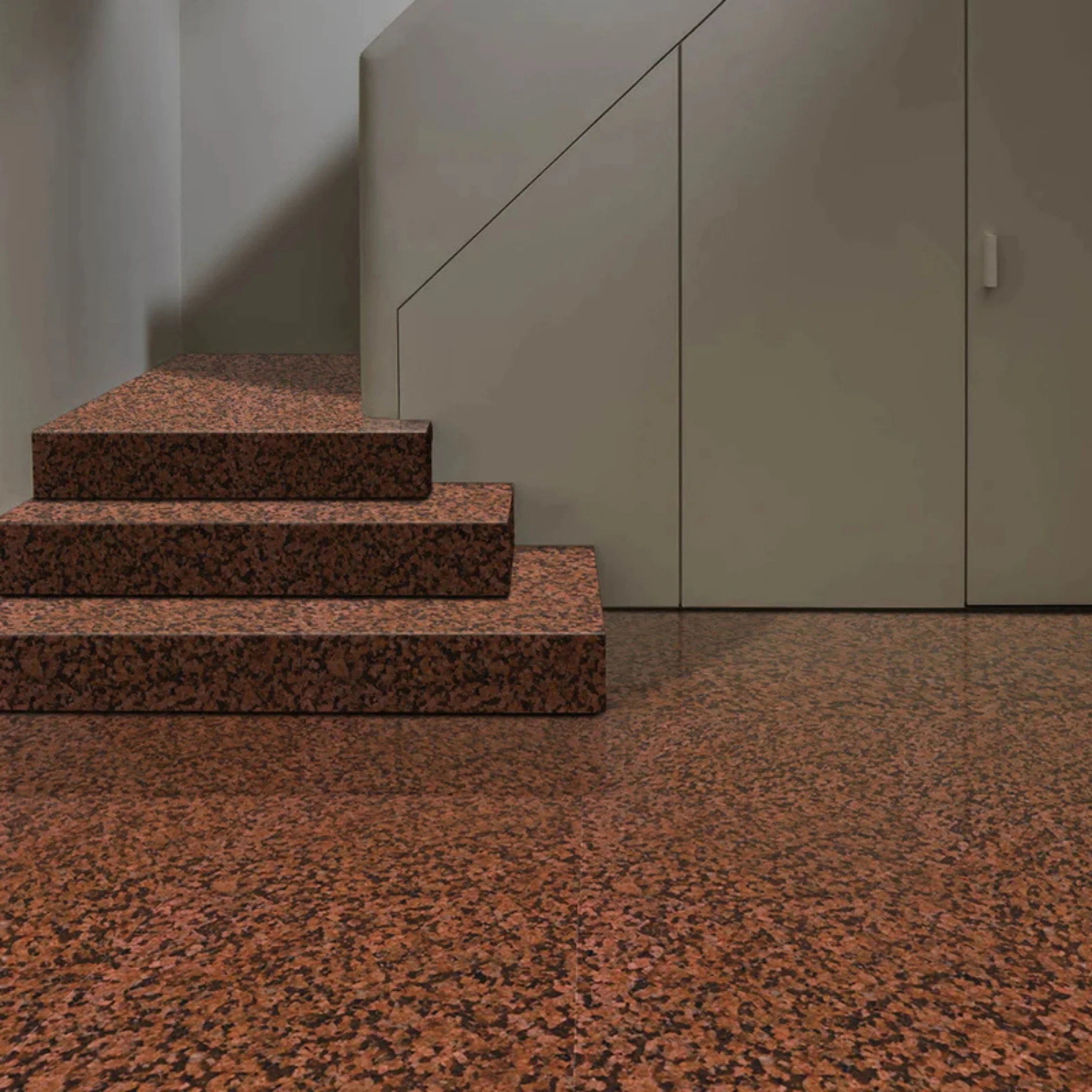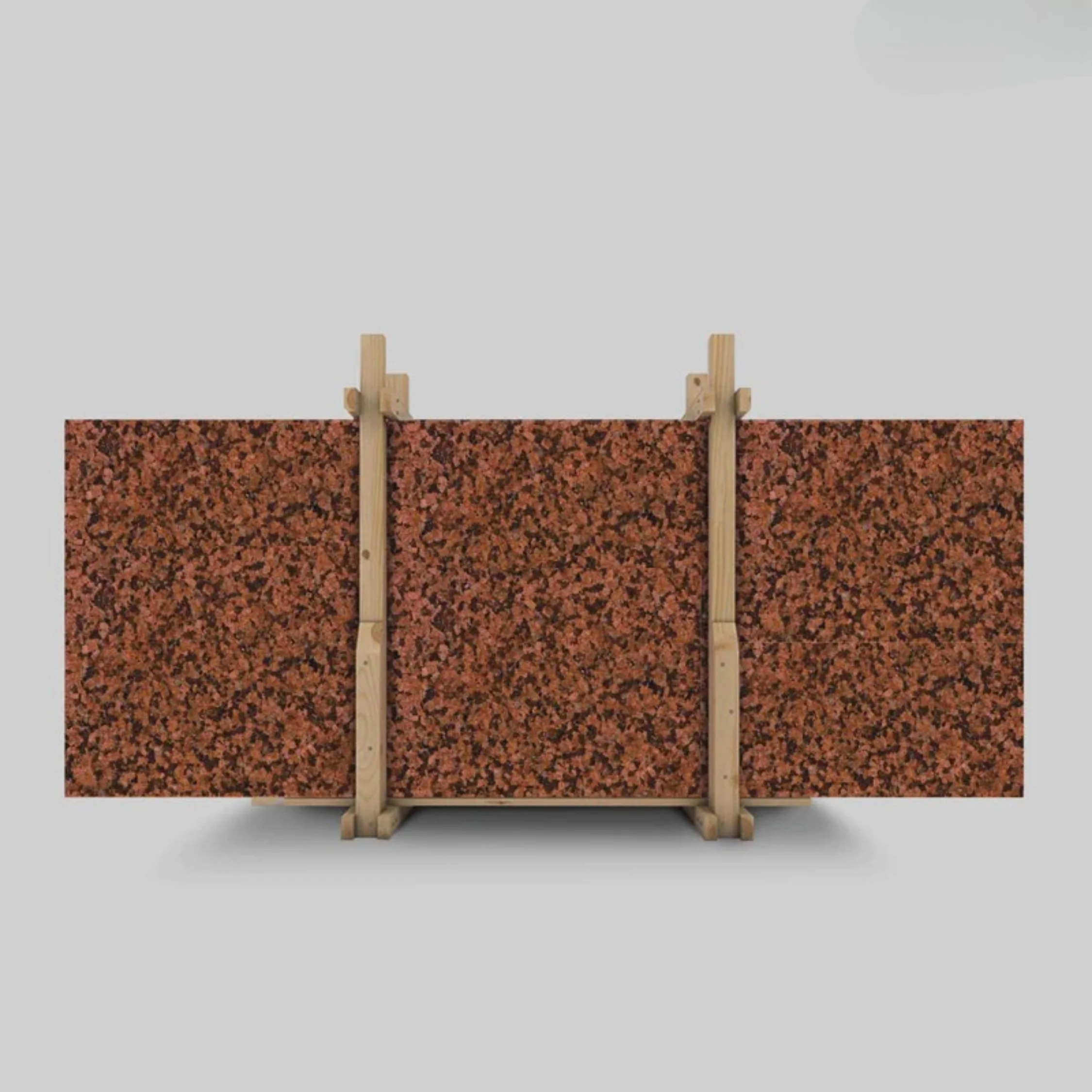 Royal Red Granite is a striking and bold natural stone known for its deep red base, complemented by intricate patterns of black, gray, and white specks. Quarried in India, this granite showcases a rich, vibrant color that adds warmth and elegance to any design. The dynamic veining and flecks scattered across the surface give it a textured, multidimensional appearance, making it a standout material for a variety of interior and exterior applications. Its polished surface further enhances the stone's natural beauty, creating a sleek and glossy finish. Highly durable, Royal Red Granite is known for its strength and resilience, which makes it an excellent choice for high-traffic areas. It is resistant to scratches, heat, and stains, ensuring that it maintains its stunning appearance and functionality over time. This granite is often used for countertops in kitchens and bathrooms, where its striking color and robust nature are highly valued. It is also widely used for flooring, wall cladding, and even outdoor features like garden accents and building facades, providing versatility for different design needs. The rich red tones of Royal Red Granite make it ideal for a range of design styles, from traditional to contemporary. It pairs beautifully with both light and dark materials, offering flexibility in design. When combined with lighter elements such as white or beige, it creates a beautiful contrast, while pairing it with other dark materials can create a sleek, cohesive look.